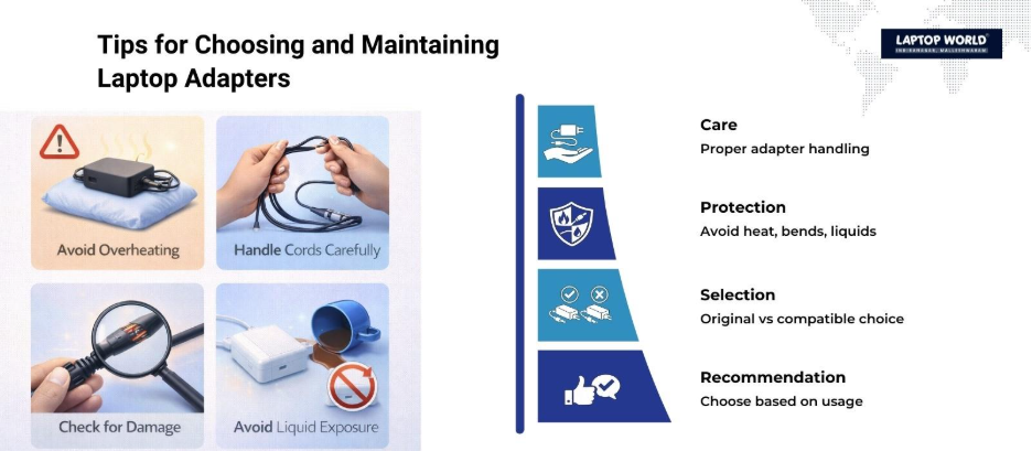 Whether you choose an original or compatible laptop adapter, proper care can extend its lifespan: